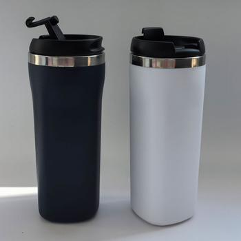 Taza de café térmica de viaje cuadrada de acero inoxidable de 12oz al por mayor, tazas de vaso de leche con tapa exterior de plástico PP y tapa abatible a prueba de fugas